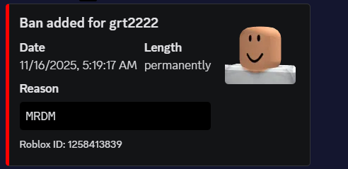 1081195113 | EndlessRisk | ROBLOX ACCOUNT 595588322592817152 | Ris_k Adam was the moderator who "banned" me though it wasn't him actually entering the command he made a human mistake which led to my ban. He said to put him down as the person to contact to get myself unbanned. A piece of the map was deleted causing my car to just float and glitch. Unsure what happened but I immediately got banned afterwards.