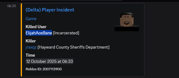 Reporter Roblox Username & ID: jraxqz:2007113900 Reporter Discord ID: 618512994728542239 Offender Roblox Username: ElijahAceBane Offender Discord Username: n/a Incident Description: kill logs show him kill multiple cops as an inmate. i killed him once (killlog and bodycam shows local time) 2nd time i didn't fully kill but he pulled out an invisible / soundless gun both times Rules Violated: exploiting Evidence: https://medal.tv/games/roblox/clips/lhIxVVYd0rJYraI3h?invite=cr-MSxTM0UsNDM2NjE5NTg&v=114