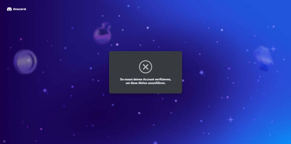 4. I can't link my discord to the website, it always says "You have to verify your account to carry out this action" can someone help me. (The picture is german)