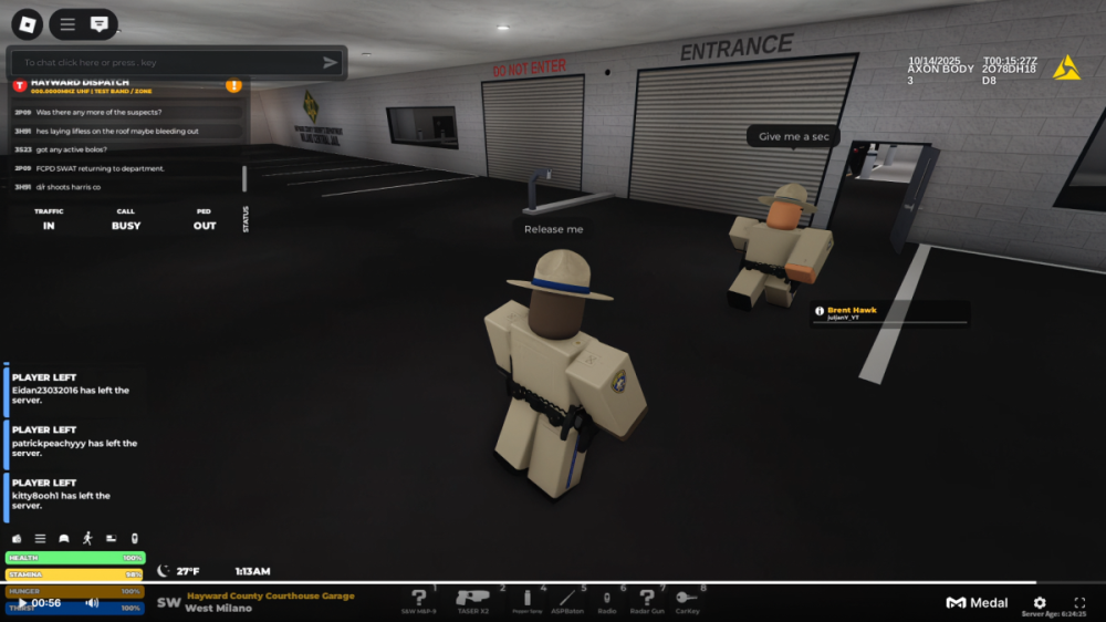 Reporter Roblox Username & ID*:(alpwera 366784523 Reporter Discord ID*:(637987991897374729) Offender Roblox Username* Firedog329 , lol12231222: Offender Discord Username* Dont Know..:Optional, but very helpful. Incident Description*:Please explain what happened in extreme detail. Im having routine patrol at perris and i saw someone jaywalking at middle of the road and i said him to 3 or 4 times stop but he didnt listen and he goes into National guard base i got him , he says 'my friends are coming' and then some RPD guy arrived the scene and started saying lying like he didnt do that that is normal , after my 'role' supervisor decided to put him in car and book him at station then they pulled out TASER'S on us and tase my supervisor several times the fact is we are SHERRIF'S then a few seconds later one is pulled out he's gun at he's holster and pointed gun on my supervisor head i got the all scenerio on clip and after this they both left the game i got name's Rules Violated*:(FRP , Out of character , Fear RP , Trying to murder LEO Officer while he's LEO too.) Evidence to Support your Claim*: 1'st Clip (Taser clip) : https://medal.tv/tr/games/roblox/clips/kTc7XS5i7bUji0MKY?invite=cr-MSx2dU4sMjkwMDYwOTM5&v=59 2'Clip (Pointing gun at Sherrif) : https://medal.tv/tr/games/roblox/clips/kTc9rQ7mvTSXInxVT?invite=cr-MSxQd2gsMjkwMDYwOTM5&v=60 3'th , 4'th Clip's (Name's) : https://medal.tv/tr/games/roblox/clips/kTcAznQrNEBy47N5n?invite=cr-MSxjeDAsMjkwMDYwOTM5&v=43 , https://medal.tv/tr/games/roblox/clips/kTcHUGqT7XkMfdB20?invite=cr-MSxLTWgsMjkwMDYwOTM5&v=19