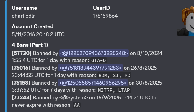 Report Status: ACCEPTED Thank you for for submitting a player report to Mountain Interactive Moderation. After careful review, we are happy to inform you that your report has been accepted and will be addressed appropriately. We encourage you to reporting any violations you see to ensure a positive game experience. Additionally, you can call for help in game using the !help command. If you have any further questions, please feel free to reach out. Best regards, The Volunteer Moderation Team