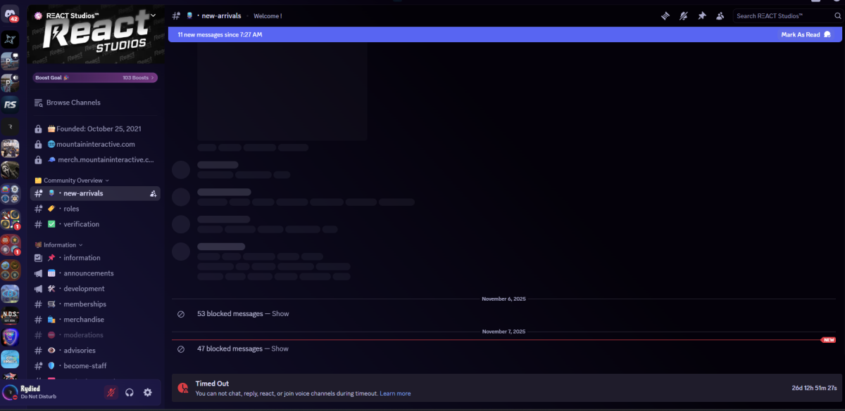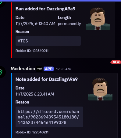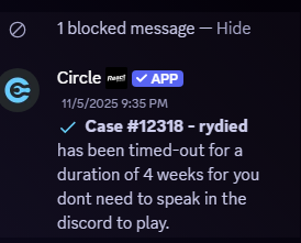 Appealing Roblox Username: DazzlingA9a9 Appealing Discord ID 654506679995465728 Warning Date: 11/5/2025 Warning Reason: "you dont need to speak in the discord to play." Warning Appeal: not a valid reason and i got muted for a month Uploading Attachment...