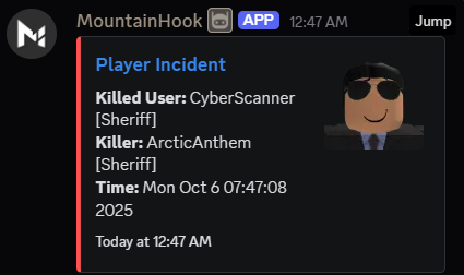 Reporter Roblox Username & ID*:CyberScanner | 375526357 Reporter Discord ID*:276564991539412992 Offender Roblox Username*:IMakeMoneyAllDay7Incident Description*:Guy runs into me in 2 separate occasions, killing me. Thinking 1st time was a fluke, it was not. Rules Violated*:M-VDM Evidence to Support your Claim*: Here shows both instances in 1 clip.StreamableWatch cuh | StreamableHere are his kill logs, looks like he loves doing it.