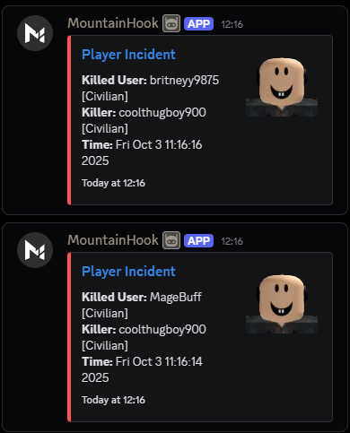 Report Status: ACCEPTED Thank you for for submitting a player report to Mountain Interactive Moderation. After careful review, we are happy to inform you that your report has been accepted and will be addressed appropriately. We encourage you to reporting any violations you see to ensure a positive game experience. Additionally, you can call for help in game using the !help command. If you have any further questions, please feel free to reach out. Best regards, The Volunteer Moderation Team- RDM, FRP