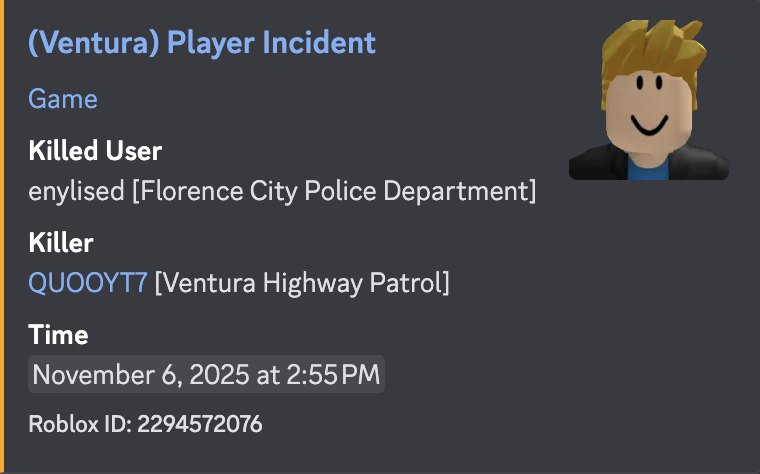 Reporter Discord: Nicko.oo Reporter Discord ID: 913638670320406541 Reporter Roblox Username: enylised Reporter Profile Link: https://www.roblox.com/users/66374021/profile Offenders Roblox Username: blickytoilet Offenders Profile Link: https://www.roblox.com/users/9729598765/profile Offenders Discord: N/A Incident Description Below: I'm pulling up to a gas station since I see a cop pull out a gun and have his lights on when there's no emergency accompanied by a VHP trooper. I pull up to see what's going on and they ask me "are you black". Initially, I say no because I am not but then say yes to see what they mean by that, then they both opened fire on me several times. Shooting me dead. Without roleplay or reason. Although I don't take offence to this, it's still discrimination/racism and FRP/RDM. Rules Violated: Roblox TOS/discrimination RDM FRP NITRP Evidence Below: Note: File size is too big so i'm putting a youtube video here. The photo size is good so I put it in the file section which is more proof of him killing me. Video: https://www.youtube.com/watch?v=h3yJpzoFuyw