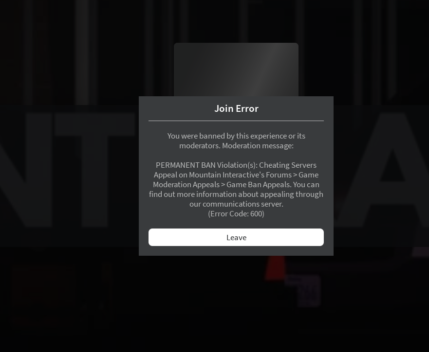 3. Your Roblox Username & User ID Mummygardner1985:2337588999 Your Discord ID gardner_22:1194045882052661308 Staff Member Who Banned You (optional) I don't know. What Happened? I have no idea, what happended.. I was fine yesterday chilling as EMS and Sheriff i was gonna hop on today around 10 AM gmt Then i've seen a ban warning saying, ''Cheating Servers'' what???? I don't have exploits scripts or executors none of that, never cheated in my life. I hope this can get resolved i've dmed some staff members hoping they could help but. Yeah so if any staff members see this please can i get unbanned, i haven't done nothing wrong and its a false ban. Ban Reason (as shown in the ban message) "Error Code 600''. PERMANENT BAN Violation(s): Cheating Servers." Why Should You Be Unbanned? I didn't cheat or exploit none of that in my opinon i think this is afalse ban icl, ive seen other appeals and its been like this alot i was just chilling as ems supervisor doing callouts then today i joined and im banned?!?!?!?