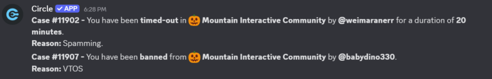 2. Appealing Discord ID 693932350433787914 Discord User: serrcoss Ban Length: Answer. I do not know. Ban Reason: VTOS Why I Should Be Unbanned: I believe I was banned for the many warnings I had received in the server. I was spamming in the Discord server when the game got taken down twice. I was then timed out and then banned. I apologize for all the childish actions I have done to get banned. I still don't know if this is the reason why I have been banned, but it most likely is. Thank you for reading this, Have a great day.