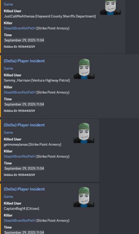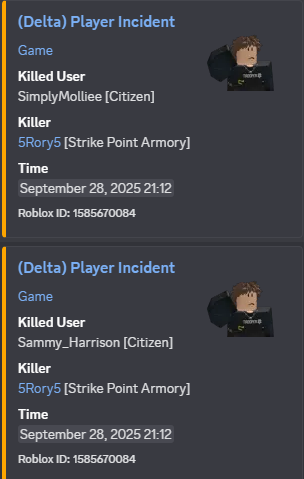 Myself and others not long loaded in individual and his friend approached without any prior RP or reason shot myself and another person dead! They had done this several times Incident Time: Logged in kill log Image Attached Date: Logged in kill log Image Attached Evidence: https://medal.tv/games/roblox/clips/lcdYJiG6SG0idlPnI?invite=cr-MSxORXosNDAyNjQzNTc3&v=59