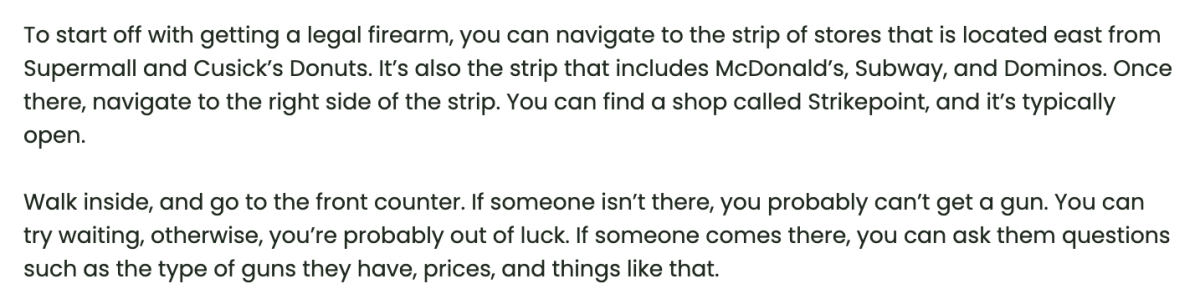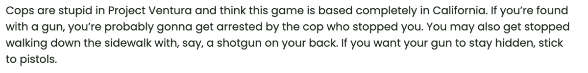 i already checked the pd and sd but both front desks only had options for turning myself in and paying my fines so then i went to the gun store and asked the clerk if i needed a license to buy, and he said no so i bought a gun, started working at mcdonalds, and a cop randomly pulled up and arrested me for carrying a gun without a license also side note idk why but i sold like 30-40 burgers and didnt check until the end while i was in the cruiser and realized i gained literally 0 dollars from that? so yeah then i checked the ventura guide docs and it said (in the pictures) nothing about a license, also checked the discord and the questions in this forum already but theres either no question or only for the other game so im confused if you need a license or not, and i literally lost like 1000+ dollars from that interaction since i lost my gun and my mcdonalds money and now im sorta pissed ngl