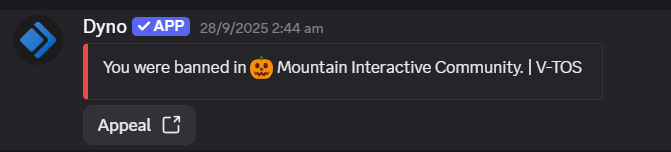 4. My Ban Appeal Appealing Discord ID: Ban Length: 1331824105376186368 Ban Reason: V-TOS Why I Should Be Unbanned: The reason why I was banned was because I might have violated a TOS within the server and I didn't know what I have posted that caused me to get banned since me and another user were just having fun spamming GIFs, the reason why i want to be unbanned is because I like the server and I really didn't mean to cause any type of issue within the server and that I am still a good guy in heart and I was just having fun, I have learnt from my mistake and I want to join back in the server as it was a misunderstanding.