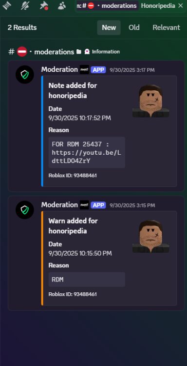 Honoripedia started following Individual left to avoid arrest , Game Warning Appeal - RDM and Game Ban - RDM