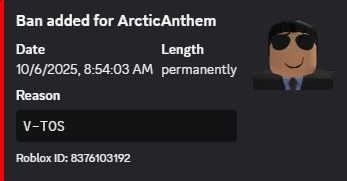 Your Roblox Username & User ID ArcticAnthem - 8376103192 Your Discord ID 1367730013130063963 Staff Member Who Banned You (optional) GuitarNoob - 122685992 (illan) What Happened? What happened was, I stopped at a traffic light, I saw a Black SUV that ran a red light, so I pursued it, and after I tried making a traffic stop, the Black SUV fled, after many times of trying to communicate with the driver, I finally performed a pit maneuver to intercept the vehicle. I got out of my vehicle, and drew my handgun. under the California Penal Code Section 196 (Justifiable Homicide) and the California Peace Officers' Bill of Rights (POBR) factors, which allow for the use of deadly force when a threat of death or serious injury is imminent, or to prevent a dangerous escape. It was necessary, after repeatedly telling the person inside the vehicle to step outside his vehicle, 2 Law Enforcement Officers who was SwoleBoye (The one who reported me) and the other Law Enforcement Officer that I didn't know who, went and intercepted my Fleeing and Eluding or Evading Arrest, telling me that the person inside was a USMS or a United States Marshals Service. I did not know that the person inside was a US Marshal since he did not have the necessary uniform or identification on him such as a Badge or a Belt, the US Marshal then told me that he was "Undercover" while he was open-carrying a handgun from his waist, did I mention that he was also NOT cooperating for a traffic stop. SwoleBoye then told me that I was doing "Too much" but I believe I was doing what was necessary. Then SwoleBoye cuffed me for no apparent reason, after telling SwoleBoye repeatedly to take off the cuffs he said "Do you want to take this to staff?" and I said yes because I knew I was in the right and I wanted to take this to in-game staff or moderators, but no one was responding, and then when he said "So I tell ArcticAnthem (referring to me) to report him on the forums. He does not listen and continues to harass surrounding units." I actually just wanted their Discord Usernames so that I can include them in the forum, but they do not give me usernames except for SwoleBoye, the US Marshal left the game and so did the other Law Enforcement Officer, I admit my wrong doings of shooting SwoleBoye but I was frustrated at that time because the 3 of them pressed me altogether and I was helpless. Regarding of the "N-Word" I sincerely apologize for my behavior, I know racism should NOT be tolerated, and I apologize for that, if I may get another chance, I would not do it again, I've acknowledged my mistakes. Ban Reason (as shown in the ban message) Why Should You Be Unbanned? I admit that I am in the wrong, but SwoleBoye didn't tell my part of the story, since they arrived late during the arrest, and I was basically helpless. I have all the video evidence that could prove that I was right. If anyone had their experience ruined because of this, I sincerely apologize. I admit that I was in the wrong of shooting SwoleBoye. I wanted to submit the clips, but I can't for some apparent reason, can someone DM me about this?