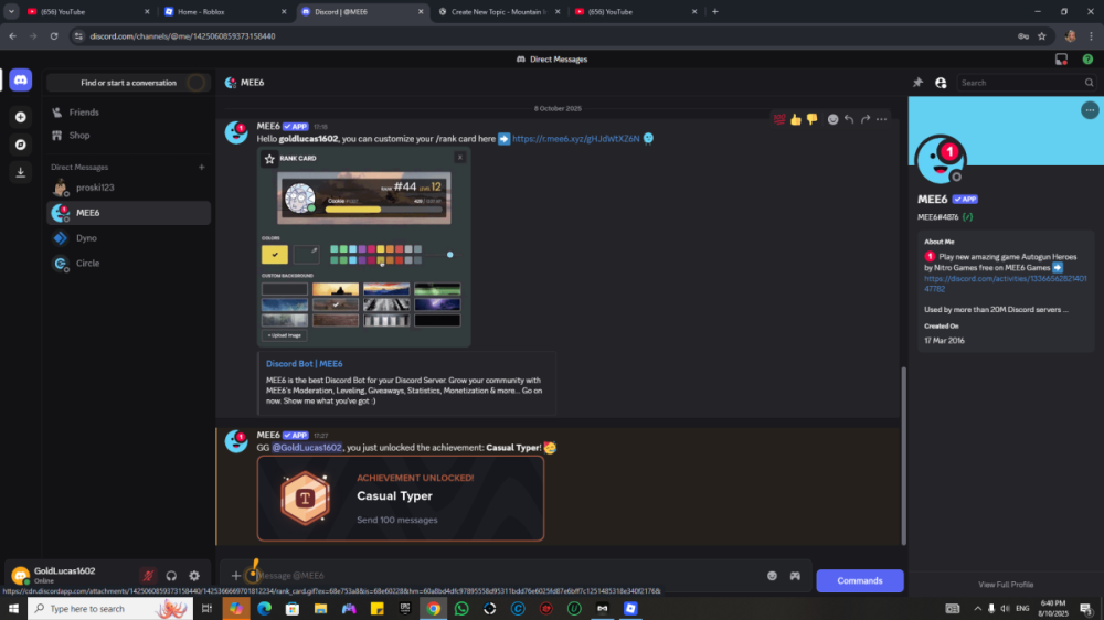 Appealing Discord ID 1425059507884527676 Ban Length: Answer. N/A Ban Reason: Answer. david's decided to ban me for a reason i have no idea on Why I Should Be Unbanned: Answer. david i'm not sure how i've annoyed you or why have you banned me listen i had no intentions to be banned and i was left speechless when i realised you banned me for apparently not liking me although i may sound annoying i'm not i really like the server and reached 6 levels within a day just consider this an tell me why you banned me aswell apart for saying sarcastically "bro please use code goldlucas1602 for medal i need the robux lol" which was a single message. (image is on nobody told me i was banned and i had to ask another member to ask the server really poor from whoever didn't inform me) Additional Members Involved/Witnessing: Answer (Optional.) N/A Please ensure you have thoroughly read and understood the ban appeal rules before submitting your appeal. It is important to follow these guidelines closely to ensure your appeal is considered. Additionally, refrain from sending direct messages or harassing staff members about the status or outcome of your appeal. Patience and adherence to the rules are crucial in this process.