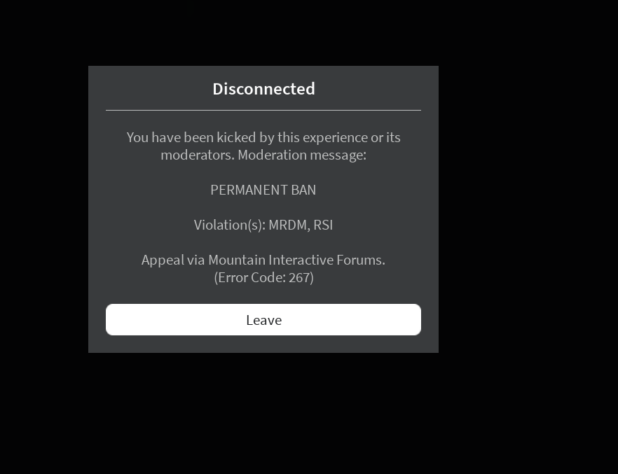 Your Roblox Username & User ID kovsage_FaZe 1635996528 Include both your username and user ID so we can locate your account accurately. Your Discord ID 828321689451888741 Please provide your full Discord ID, not just your username. What Happened? On 11/10/2025 at 3:07AM (in game time) I mass RDMED a group of people and a officer arresting my friend. https://medal.tv/games/roblox/clips/ltHbHriRYPIzOaJyr?invite=cr-MSx1OVAsMjcyMTkxNzI4 Ban Reason (as shown in the ban message) RSI, MRDM Why Should You Be Unbanned? I think I should be Unbanned or atleast have a lower punishment, because I did not fully understand the rules of RDM in this game. I thought shootouts were allowed, But I do take full responsibility for the rules I broke. I understand I made a bad choice and I know it ruins the experience for others. I really enjoy playing this game and I would like another chance at playing it once again and following the rules. I promise this won't happen again if I am unbanned.