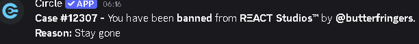 Appealing Discord ID: 1211366338044633100 Ban Length: Answer: Permament Ban Reason: Answer. ´´Stay gone´´ Why I Should Be Unbanned: Answer.Hello, I think you should Unban me, beacuse i think i did nothing wrong, the moderator who banned me was the REASON: ´´stay gone´´. I think i should get unbaned alone for the reason. And if i did something wrong i apologize to the person who i offended. Thank you. Additional Members Involved/Witnessing: N/A