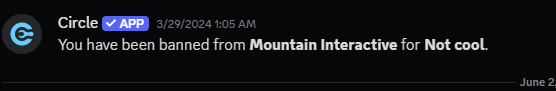 Ban Reason: Answer. "Not Cool." On 03/29/2024, I was at school or somewhere, and I had my phone on me. I was in a server that was connected to the game Los Angeles, and someone kept spam-pinging. It was irritating me because it ended up causing my phone to get taken. I responded by calling them the N word, which was a horrible choice to make: "Shutup N%#!!" Then I was shortly banned. Why I Should Be Unbanned: Answer. The reason I feel I should be unbanned is that it’s been months, maybe even a year. I know what I said was wrong, but I would like to be given a second chance. In hindsight, I’ll make sure to control my emotions better and think before reacting I also somewhat feel as if this is excessive as this wasn't the primary server for Mountain Interactive and it was unrecognized criminal faction.