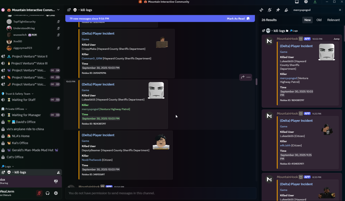 So like 5 minutes prior an individual ran from me in the same vehicle, same plate, and same ped desc so I saw him at SP went to detain him and he started running on foot. I tased him and grabbed him and was about to talk with him and then I was shot. After looking in the kill logs it was someone on the VHP team that shot and killed me. The time saw within my clip on the body cam ui and the time the kill log came through is the same.