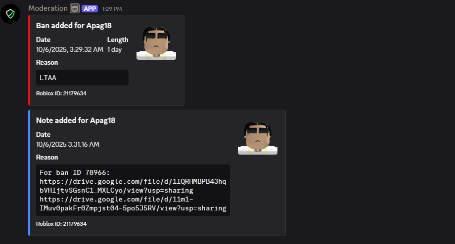 Posted Monday at 03:09 AM2 days Reporter Roblox Username & ID*:Astroiid_ethan | 1851823212Offender's Username:Apag18Incident Description*:Male LTAA'd after being cuffed, right before being taken to the vehicle.Rules Violated*:LTAAProof: https://medal.tv/games/roblox/clips/lfdJ0THMfi5UfhhuV?invite=cr-MSxKdHEsMzQ3Mzc4NTgw&v=300 Sincerely,Ethan!