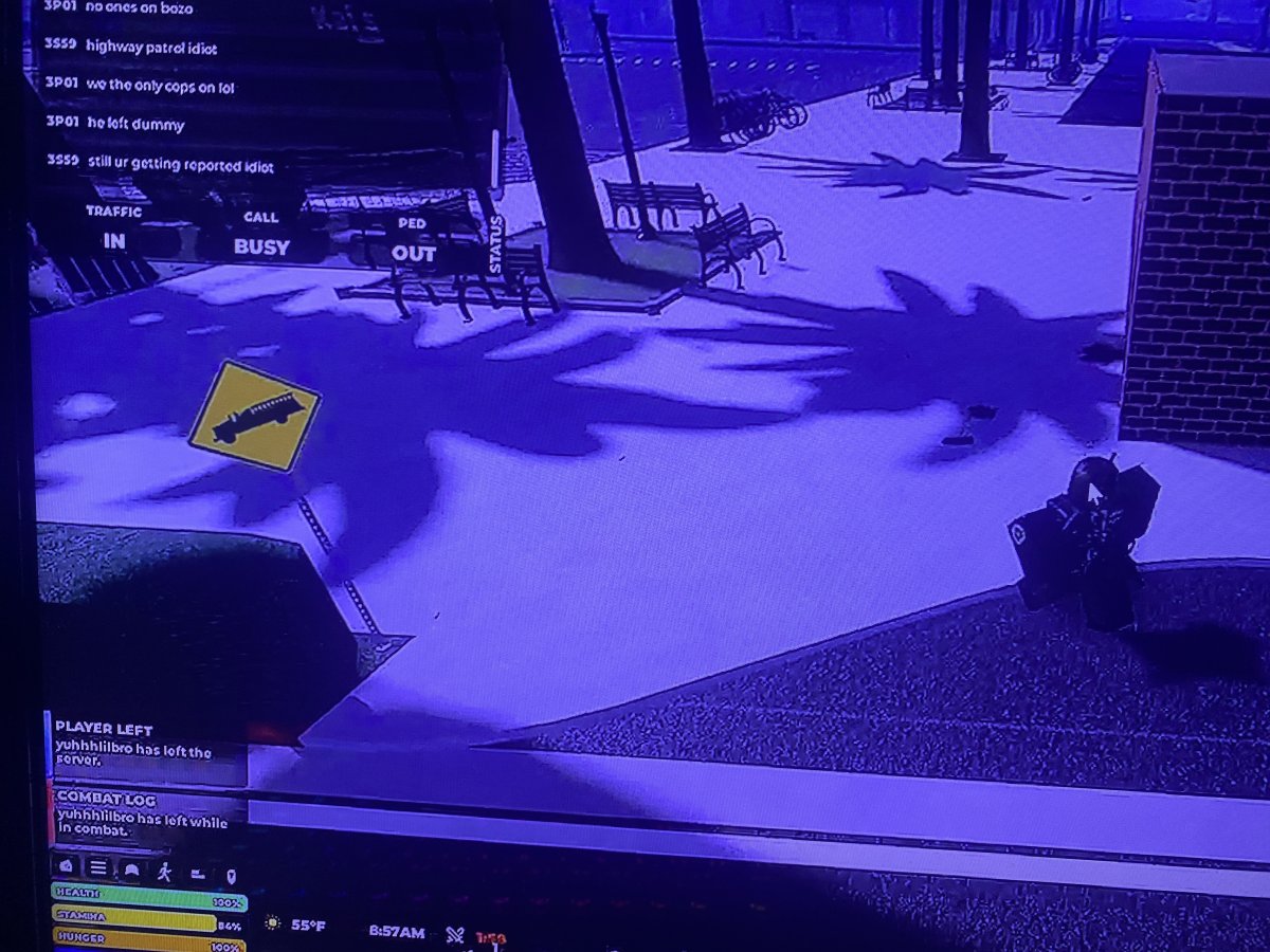 he was shooting like a madman at vhp pd i went their tazed him he got up i ran to my car he shot at me as i drove away i got out shot back got downed lost my ar got up shot again died talked to him on the radio where he acknowledged his wrongdoing and said he didnt care then i later heard shooting at kais autos and a dude who just joined the server keep in mind left during combat keep in mind he just spawned in a safezone which means the cop was spawn killing after that i killed him as u can see in the clip and he left