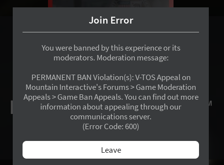 Ban Reason (as shown in the ban message)