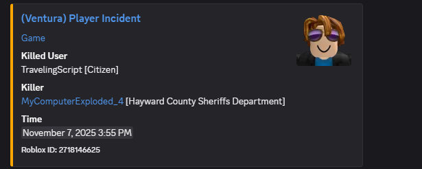 Detailed Description of Events: After some hard work, I had managed to shoot a firefighters tires out so I could kidnap him. I then took the firefighter to Milano Bank to hold him hostage. I had him do a radio call to tell them we were there, 5 minutes later a Deputy in a marked patrol car wearing a bacon avatar walked through the doors and shot both me and the hostage dead without even saying a word.